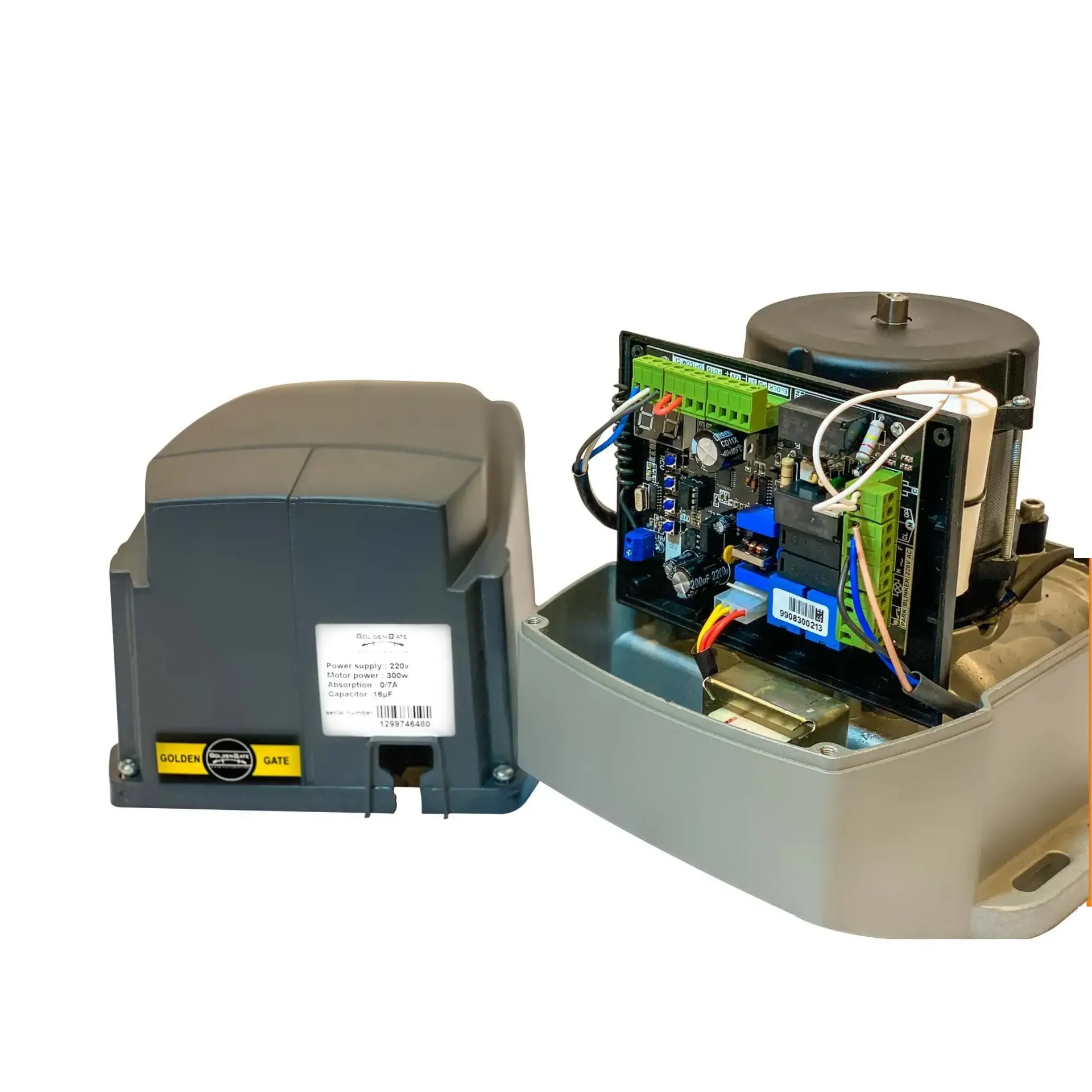 جک ریلی گلدن گیت جهت کنترل درب ریلی تا وزن 1500 کیلو گرم و تا طول 8 متر مناسب میباشد . این موتور درب ریلی از طریق ریموت لرنینگ عمل می کند . علاوه بر این ، مجهز به کانکتور تحریک دستی است که امکان اتصال رسیور سیمکارتی و کلید کنترل دستی را فراهم می کند تا در صورت تمایل مشتری یا به همراه نداشتن ریموت ، از طریق تماس تلفنی یا کلید کنترل دستی ، اقدام به باز نمودن درب نمود .