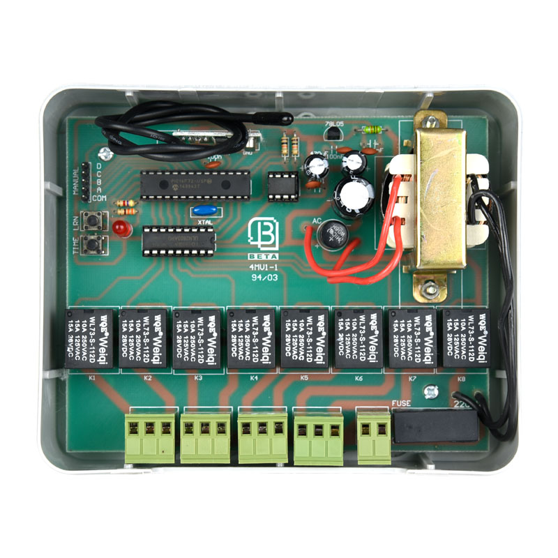 - مرکز کنترل چهار موتوره بتا، جهت کنترل 4 عدد موتور کرکره توبولار به طور مستقل، طراحی شده است که جهت نصب در فروشگاهها ، کارگاه ها و مجتمع های مسکونی که چند درب ورود و خروج دارند، بسیار مناسب است. نکته قابل توجه این است که تمامی کرکره ها، توسط تنها یک ریموت لرنینگ کنترل می شوند و قابلیت تنظیم مدت زمان عملکرد هر کرکره به طور جداگانه وجود دارد. علاوه بر این، در صورت نیاز می توان از کلید کنترل دستی نیز جهت کنترل موتورها استفاده کرد.